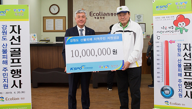 국민체육진흥관단 에콜리안 정선골프장과 정선군은 동해안 산불피해 주민을 돕기 위해 지난 20일 에콜리안 정선골프장에서 자선골프행사를 진행했다.