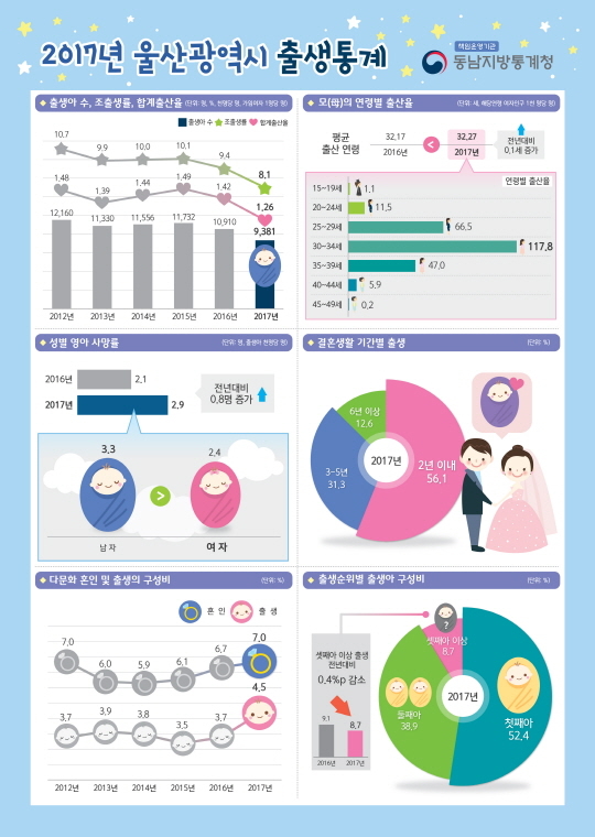 여성의 평균 출산연령은 전년 대비 0.1세 증가한 32.27세로 울산 역시 평균 연령이 지속적으로 높아지고 있었다.