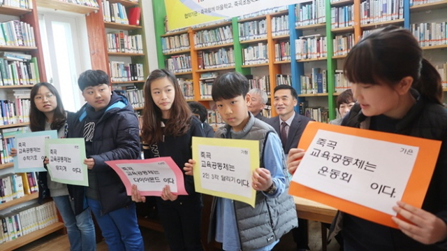 산골 오지인 곡성군 죽곡면에서는 지난 9일(화) 작지만 의미 있는 행사가 열렸다. 죽곡초등학교와 죽곡함께마을학교, 죽곡면사무소, 목석죽지역아동센터, 한울고등학교 등이 마을교육공동체 협약을 맺은 것이다. 이들은 협약을 통해 마을교육공동체를 구성, 지역 소규모학교를 살리기 위한 다양한 방안들을 함께 모색해나가기로 했다.