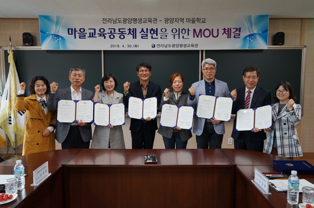광양평생교육관(관장 김갑현)이 지난달 30일 교육관 회의실에서 광양지역 5개 마을학교와 마을교육공동체 실현을 위한 업무협약을 체결했다.