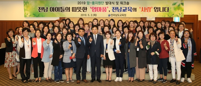전라남도교육청(교육감 장석웅)은 2일 보성다비치콘도에서 맘-품지원단 170명과 교육지원청 관계자들이 참석한 가운데 2019학년도 발대식을 갖고 역량강화를 위한 워크숍을 개최했다.