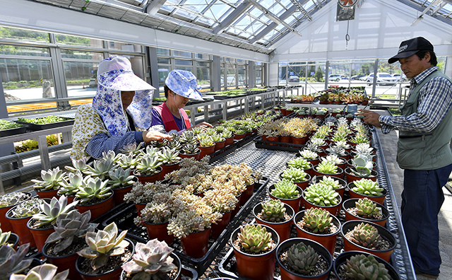 함백산 야생화 마을공방은 공공근로 및 지역공동체 일자리사업에 참여하는 주민들이 분경 및 분화 등의 재배기술을 체계적으로 배워 금강초롱, 노랑무늬 붓꽃 등 120여 종의 야생화를 정성껏 키우고 있다.
