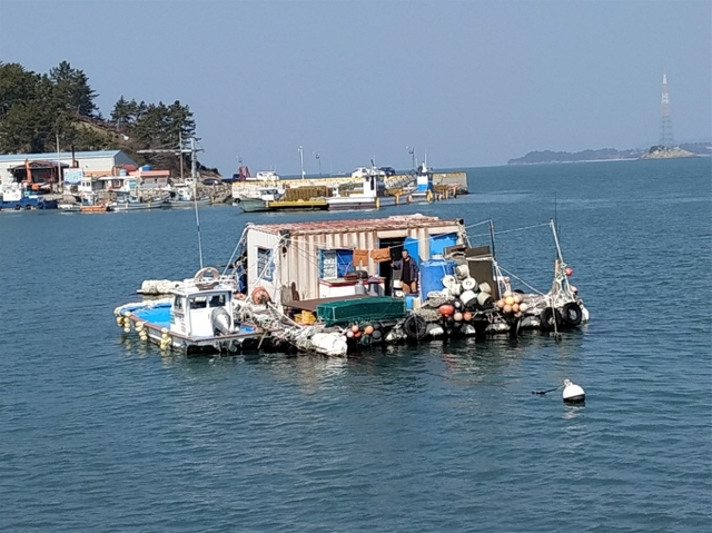▲25년 동안 거처할 집과 땅이 없어 완도군 금당면 울포리 바다 위에서 부표와 컨테이너로 만든 임시 거처.ⓒ완도군
