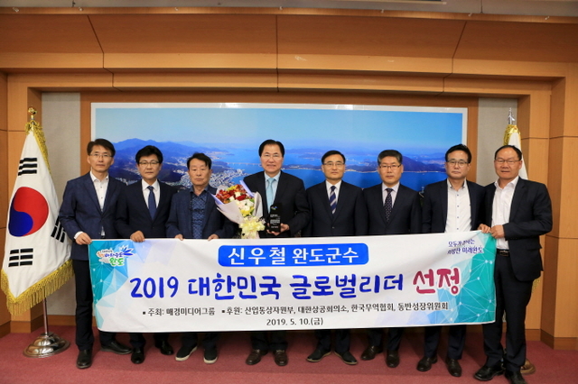 전남 완도군은 지난 10일 산업통상자원부와 대한상공회의소, 동반성장위원회에서 후원하고 매경미디어그룹에서 수여하는 ‘2019 대한민국 글로벌 리더’에 신우철 완도군수가 선정됐다고 밝혔다.
