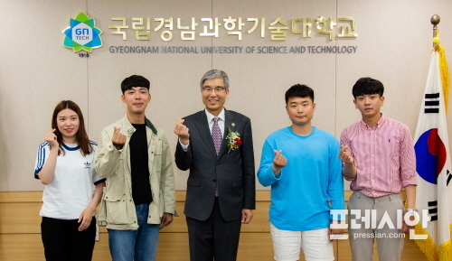 국립 경남과학기술대학교 총학생회가 스승의 날을 맞아 김남경 총장에게 존경의 마음을 담아 꽃을 달아주고 감사함을 전했다.