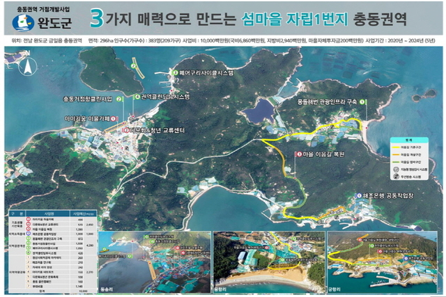 완도군(군수 신우철)이 해양수산부 주관 공모사업인 오는 2020년 일반농산어촌개발사업에 금일 충동권역이 최종 선정되어 오는 2020년부터 4년간 총사업비 100억 원을 투입할 예정이다.