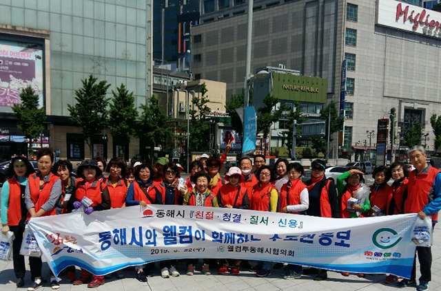 이날은 지난 4월 동해안 대형 산불로 침체된 지역경기를 회복하고 다가오는 여름철 관광객을 유치하기 위해 회원 30여 명이 동대문 평화시장, 명동, 남대문시장 등 유동인구가 많은 서울 지역에서 동해시의 대표 관광지와 먹거리를 홍보하는 활동을 전개했다.