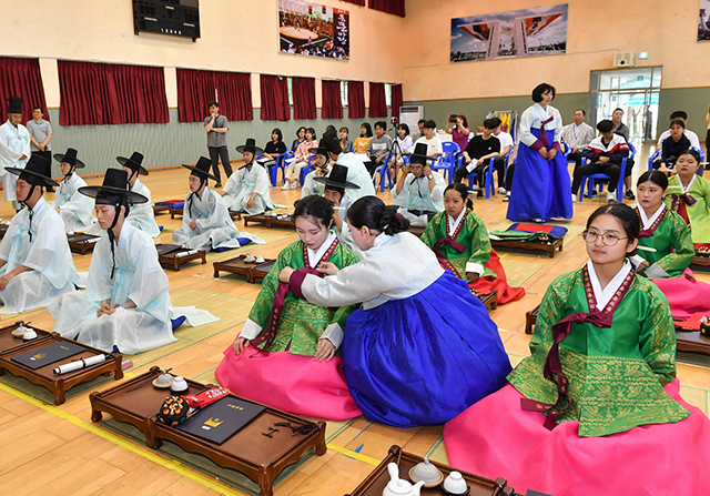 강원 정선향교(전교 김종복)에서는 24일 임계고등학교 체육관에서 학생들을 대상으로 2019 전통 성년식 관계례 행사를 거행했다.