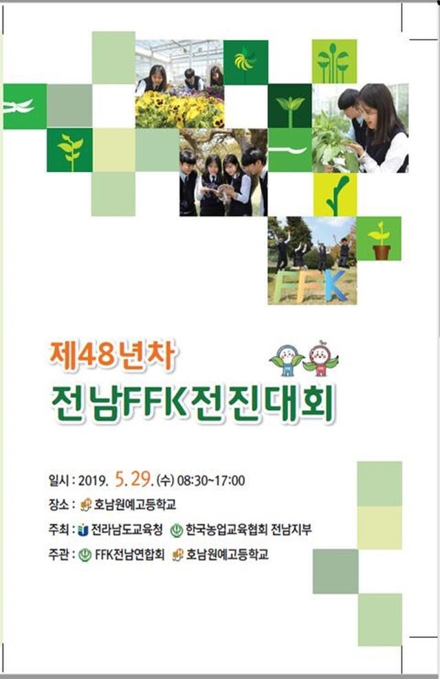 전라남도교육청(교육감 장석웅) 소속 농업계 고등학교 학생들의 잔치인 ‘제48년차 전라남도 FFK(Future Famers of Korea) 전진대회가 ‘함께 꿈꾸는 농업!, 함께 만드는 미래 농업!’을 주제로 오는 29일(수) 호남원예고등학교에서 열린다.