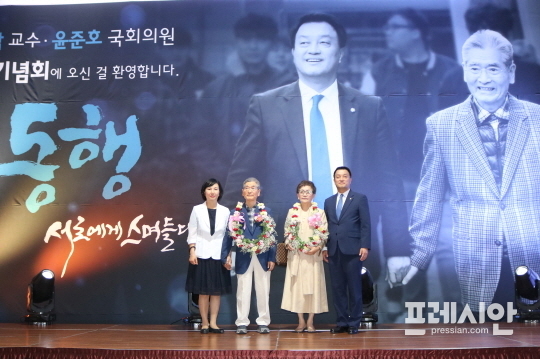 윤준호 의원은 지난 1987년 스승과 제자로 처음 만나 30년간 인연을 이어오고 있는 김민남 동아대 명예교수와 함께 만든 에세이 '동행:서로에게 스며들다' 출판기념회는 25일 오후 부산 벡스코 제1전시장에서 개최했다.