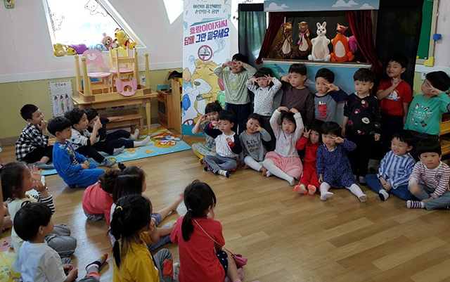 삼척시보건소는 매월 어린이집, 유치원 등을 직접 방문해 캐릭터를 활용한 손 인형극으로 눈높이 금연교육 및 현장 밀착형 프로그램을 진행하고 있다.