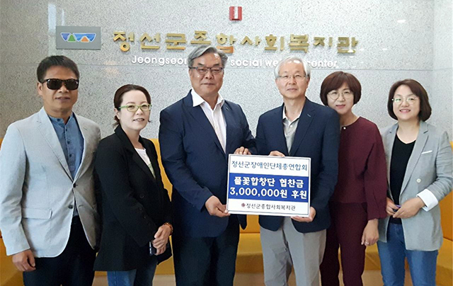 강원 정선군장애인단체총연합회(회장 김준영)는 정선군종합사회복지관(관장 홍영표)에서 운영하고 있는 ‘풀꽃합창단’ 단복비 마련을 위한 후원금 300만원을 전달했다.
