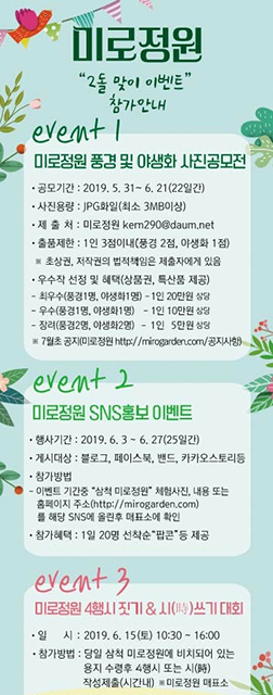 먼저 ‘미로정원 풍경 및 야생화 사진공모전’이 지난달 31일부터 6월 21일까지 22일간 진행되며, 우수작 8점을 선정해 상품권 및 특산품을 제공하기로 했다.