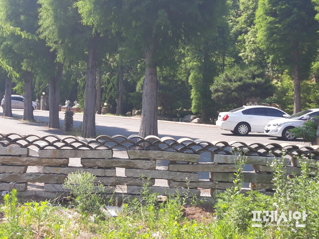 또 돌과 기왓장을 임의로 쌓아올려 주차장에서 ‘산기마을’로 오가는 길까지 가로막고 주차장 등으로 사용하고 있다.
