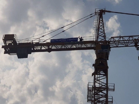 양대 노총 소속 전국 타워크레인 노동자가 동시 파업에 돌입한 가운데 부산에서도 노동자들이 67개소를 점거하고 농성을 벌이고 있다.