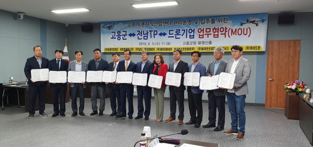 전남테크노파크(원장 유동국)은 5일 고흥군청에서 드론산업 생태계 조성을 위한 고흥군(군수 송귀근)과 ‘드론 특화 지식산업센터’ 관리‧운영 업무협약을 체결하고, 이와 함께 드론기업 10개사와도 센터 입주 및 투자의향 업무협약(MOU)을 체결했다고 밝혔다.