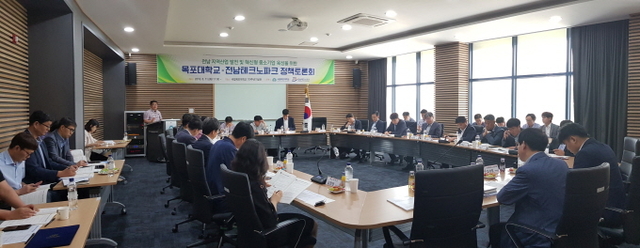 이날 토론회에는 목포대학교 이상찬 산학협력단장, 초종명 부단장 등 정책과제 연구교수진 21명과 전남테크노파크 유동국 원장을 비롯한 재단 임직원 20명이 참석했다.
