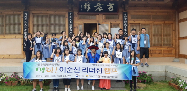 또 지난 14~15일 이 충무공의 문화유산이 있는 보성, 순천, 여수 일원 유적지에서 이틀 동안 치러진 캠프에는 서울 월곡중학교 임원 학생 30여 명이 참여했다.