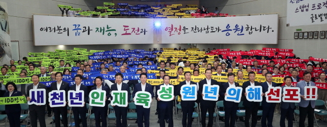 전라남도는 18일 도청 왕인실에서 전남 인재육성 도민추진위원회 공동위원장인 김영록 도지사, 장석웅 전라남도교육감, 최일 동신대 총장을 비롯한 위원, 학생, 학부모 등 500여 명이 참석한 가운데 ‘새천년 인재육성 비전 선포식’을 열었다.