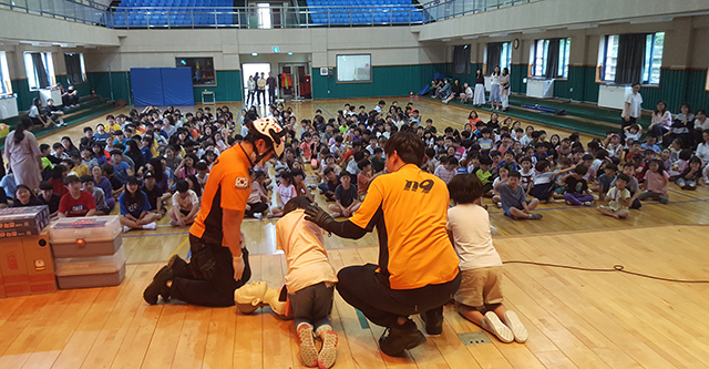 이날 올 상반기 민방위 시범학교로 선정된 천곡초등학교에서 300여 명의 학생들이 참여해 화재대피 훈련, 비상시 행동요령, 심폐소생술, 소화기 및 방독면 사용법 등 체험 위주의 교육을 진행해 학생들의 호응이 높았다.