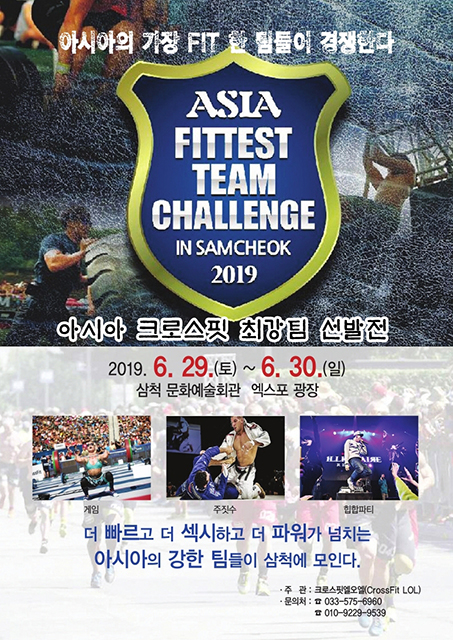 아시아 크로스핏 최강팀을 선발하는 ‘2019 아시아 휘테스트 팀 챌린지 인 삼척’이 오는 29일부터 30일까지 2일간 삼척시 문화예술회관 일원에서 개최된다.