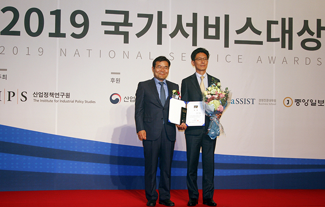 ‘2019 국가서비스대상’은 산업정책연구원에서 주최하고 산업통상자원부, 중소기업벤처기업부 등이 후원하는 시상식이다.