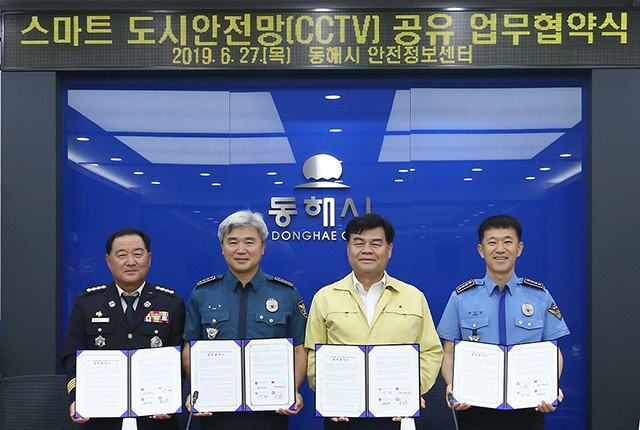 동해시(시장 심규언)는 27일 동해시 안전정보센터에서 동해경찰서, 동해해양경찰서, 동해소방서 등 긴급대응기관과 스마트 도시안전망(CCTV) 긴급영상 공유를 위한 업무협약을 체결했다.