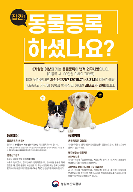자진신고 기간 이후인 9월부터는 동물 미등록자와 동물 정보 변경 미신고자에 대해 과태료를 부과할 방침이다.
