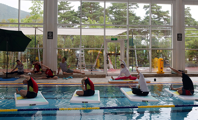 물과 요가를 즐길 수 있는 ‘아쿠아 요가’, 하늘길 산중에 위치한 힐링 존 하이원 팰리스호텔 인근에 위치한 힐링 존은 중앙아시아 지역 유목민들의 주거형태를 재현한 유르트(힐링하우스), 인디언식 모닥불을 재현한 키바, 숲속에 설치된 명상데크 등이 설치되어 있어 피톤치드를 느끼고 자연의 소리를 들으며 명상, 요가, 체조, 마사지 등의 프로그램을 체험할 수 있다.