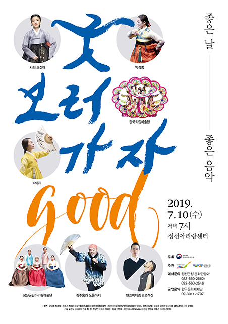 전국 문화 소외지역 문화향유 기회 확대를 위해 2004년부터 16년 동안 이어가고 있는 ‘굿GOOD 보러가자’ 공연은 최고의 명인과 젊은 예술인들이 펼치는 국가 및 시·도의 다양한 무형문화재와 문화콘텐츠를 한 자리에서 만날 수 있는 전통예술공연이다.