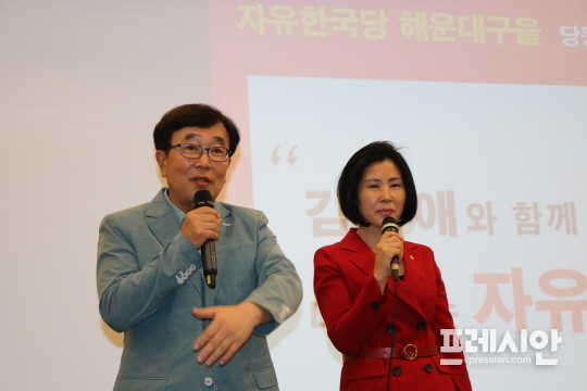 3일 오후 벡스코 컨벤션홀에서 열린 '김미애와 함께 다시 뛰는 자유대한민국' 토크콘서트에서 서병수 전 부산시장과 자유한국당 김미애 해운대을 당협위원장 간의 대담에서 내년 총선 승리를 위한 지지 호소가 쏟아졌다.
