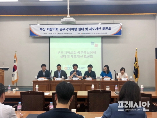 부산경제정의실천시민연합과 노기섭·구경민 부산시의원은 9일 오후 3시 시의회 중회의실에서 '부산 지방의회 공무국외여행 실태 및 제도개선 토론회'를 개최했다.