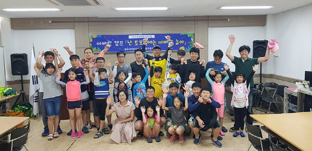 이날 총 15가족 아빠들이 참가해 초등자녀와 단둘이 책을 읽고 직접 재료를 손질하는 푸드아트와 야외물놀이 행사를 진행했으며, 서로에게 집중하면서 대화하는 내용으로 화기애애한 시간으로 채워졌다.