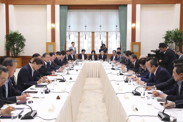 문 대통령은 공개로 진행된 간담회 첫 부분에서는 "외교적 노력에도 불구하고 사태가 장기화될 가능성을 배제할 수 없다"며 "전례 없는 비상 상황인 만큼, 무엇보다 정부와 기업이 상시적으로 소통하고 협력하는 민관 비상 대응체제를 갖출 필요성이 있다"고 강조했다. (☞관련 기사 : 文대통령 "사태 장기화 가능성…日 막다른 길 가지 말라")