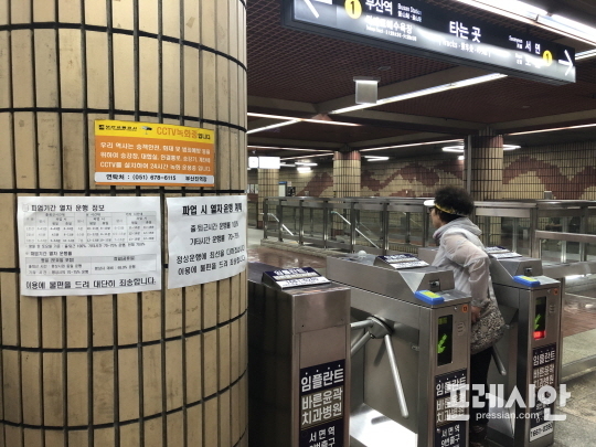 앞서 부산지하철 노조는 정부 가이드라인에 따른 임금 1.8% 인상과 노동조건 개선 및 안전확보를 위한 인력 550명을 요구했으나 사측이 임금 동결로 맞서면서 합의점을 찾지 못하고 지난 10일부터 총파업에 돌입했다.