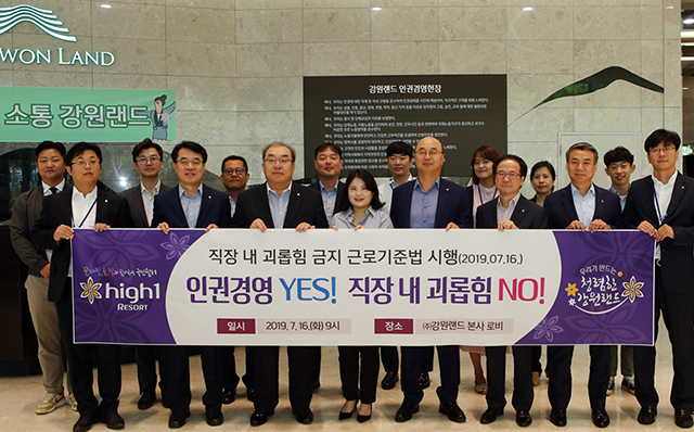 한편 강원랜드는 법 개정에 대비해 지난 5월 29일 갑질 및 부당한 업무 지시 관련 윤리행동강령을 개정하고 전 실·팀장을 대상으로 ‘직장 내 괴롭힘 금지’교육을 실시했다.