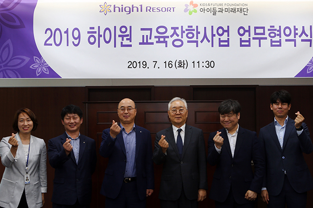 강원랜드(대표 문태곤)는 사회복지법인 아이들과미래재단과 ‘2019 하이원 교육장학 사업 업무협약’체결식을 가졌다고 16일 밝혔다.