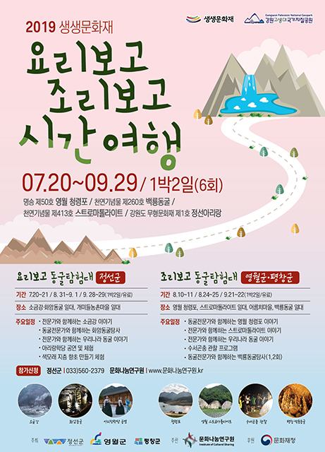 프로그램은 오는 20일부터 9월 28일까지 진행되며, 요리보고 동굴탐험대(정선) 3회, 조리보고 동굴탐험대(영월·평창) 3회 총 6회를 진행한다.