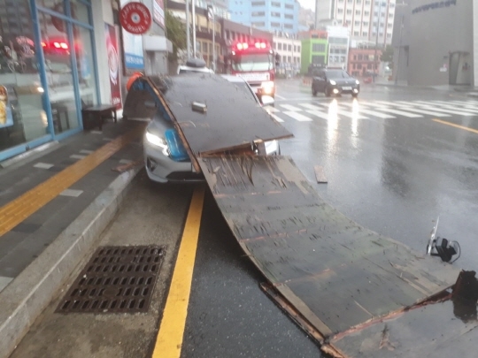 이날 오전 7시 30분 기준으로 부산소방본부에는 태풍 피해 신고가 24건이 접수됐으며 대부분 주택이나 공장 침수로 인한 배수 요청과 간판이 떨어질 것 같다는 신고가 많았다.