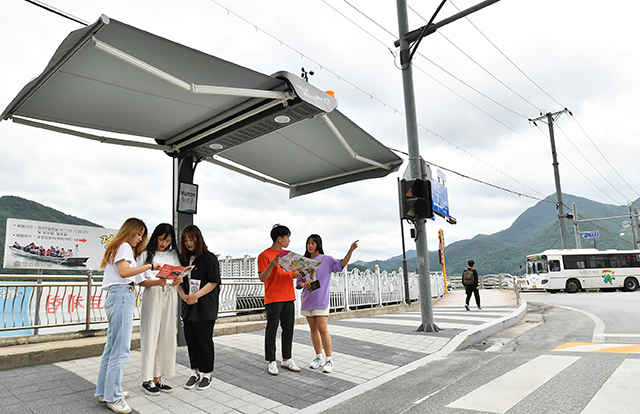 강원 정선군(군수 최승준)은 최근 기후변화로 인한 폭염이 계속 이어지고 있는 가운데 유동인구가 많은 횡단보도변에 무더위를 식힐 수 있는 스마트형 그늘막과 일반 파라솔형 그늘막을 설치했다.