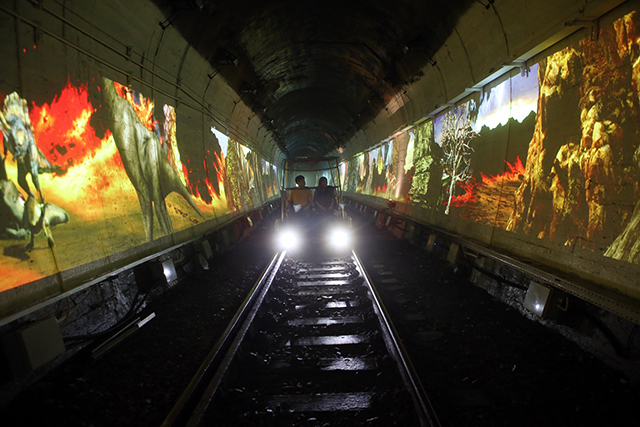 최근 하이원 추추파크는 이 터널 2개소, 총 140미터 구간에 공룡영상을 만들어 상영하고 있다. 거대한 몸집과 기다란 목을 가진 초식공룡 브라키오사우르스, 세개의 뿔을 가진 트리케라톱스, 가장 악명 높고 포악하기로 유명한 티라노사우르스 등이 마치 레일바이크를 쫓아오는 듯한 착각을 불러일으켜 한층 더 오싹한 시원함을 책임진다.