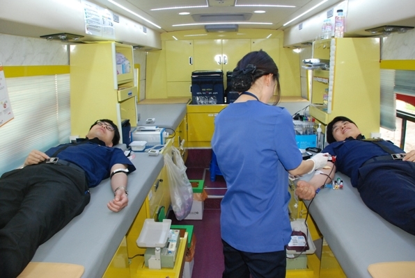 대한적십자사 전북혈액원의 이동 헌혈버스에서 실시된 헌혈은 부족한 혈액 확보에 조금이나마 보탬이 되고자 무더운 날씨 속에서도 많은 직원들이 동참했다.