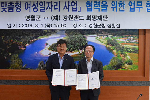 강원랜드 희망재단(이사장 고광필)은 1일 영월군청에서 영월군(군수 최명서)과 업무 협약식을 갖고 지자체 협력형 여성일자리 사업을 본격 추진키로 했다.