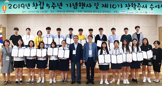강원 태백시는 최근 서울시 소재 ‘정이 있는 장학재단’(이사장 정윤택)이 재단 창립 5주년 기념행사를 갖고, 태백지역 학생들에게 장학금을 전달했다고 14일 밝혔다.