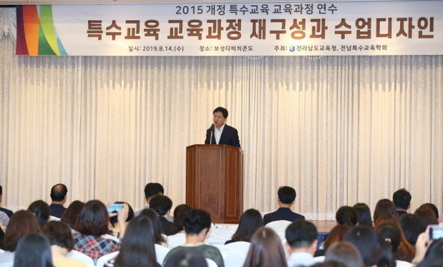 전라남도교육청(교육감 장석웅)은 지난 14일 보성 다비치콘도에서 도내 전체 특수교원 700여 명을 대상으로 ‘2015 개정 특수교육 교육과정 연수’를 실시했다.