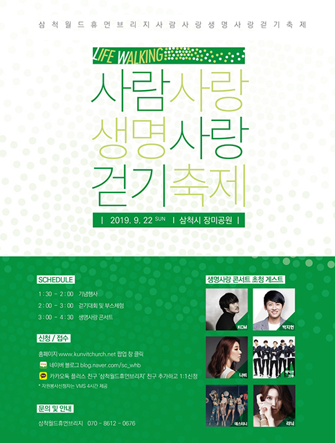 삼척시는 ‘제2회 사람사랑 생명사랑 걷기축제’가 ‘라이프 워킹’주제로 오는 9월 22일 오후 1시 30분 삼척장미공원에서 개최된다고 밝혔다.