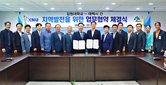 시는 이날 류태호 태백시장, 강원대 김헌영 총장을 비롯한 관계자 등이 참석한 가운데 협약식을 갖고 상호발전과 우의 증진, 지역발전을 위한 관·학 협력체계를 구축하기로 했다.