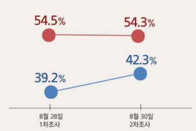 리얼미터는 같은 주제로 이틀 전에도 동일한 조사를 실시한 바 있다. 지난달 28일 조사와 비교하면, 30일치 조사에서 반대 의견은 0.2%포인트 하락해 사실상 동일했으나 찬성 의견은 3.1%포인트 늘었다.