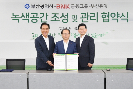 BNK부산은행은 3일 오후 부산시청에서 시와 '녹색공간 조성 및 관리 추진 협약'을 체결했다고 밝혔다.