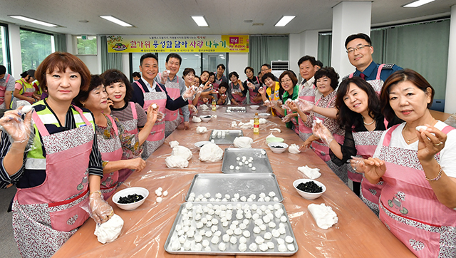 이날 행사는 고유의 명절인 한가위를 맞아 지역 내 홀몸 어르신들을 위해 노블레스 오블리주 참여 자원봉사자들의 정성을 담아 송편 및 녹두전, 꼬치전을 직접 만들어 홀몸 어르신 300가구에 전달하고 풍성하고 행복한 한가위를 함께 나누는 더불어 살아가는 훈훈한 정을 나누었다.